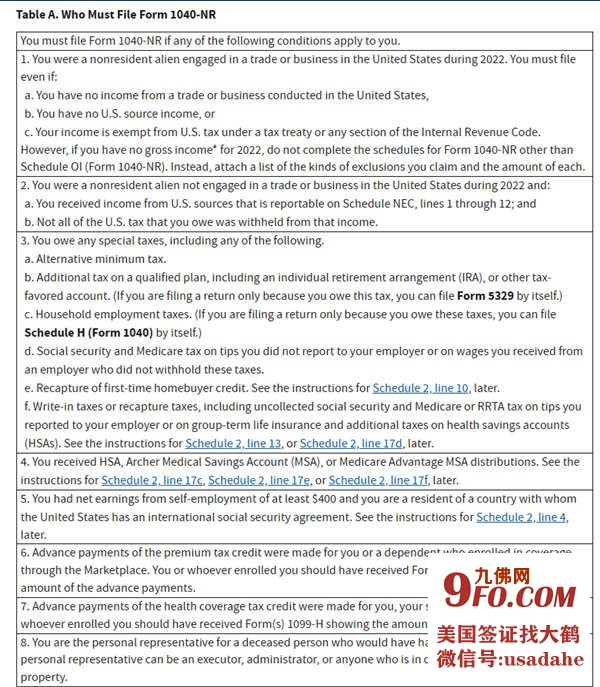 怎么申请办理政治庇护?美国签证办理公司机构推荐阅读:美国移民面谈后被要求补件,原因竟是报错税表。在移民面试后被领事官要求补交资料是非常普遍的事情,但是近期有位被补件的申请人主要原因竟然是因为美国申请人在报税时选择报税的类型出现了错误,而被要求补充资料,这还是闻所未闻!因为疫情的原因,近几年一些美国公民长期居住在美国境外,因为没有在美国居住,在填报税表时,美国申请人选择了Form 1040-NR(U.S. Nonresident Alien Income Tax Return),即非美国居民外国人收入纳税申报表。➤那一般是谁需要报这个税表呢?一起来看官方指引: