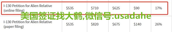 申请美国亲属移民调整身份的I-130,申请费从535美元涨到625美元。