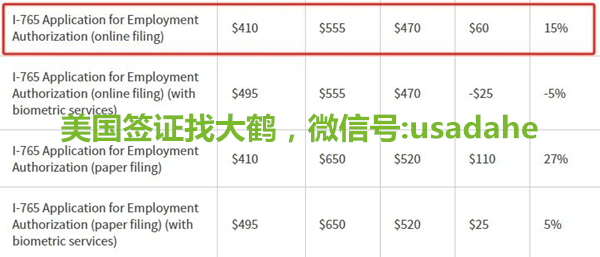 十、美国工卡申请I-765需要多少钱的申请费用?费用调整如下: