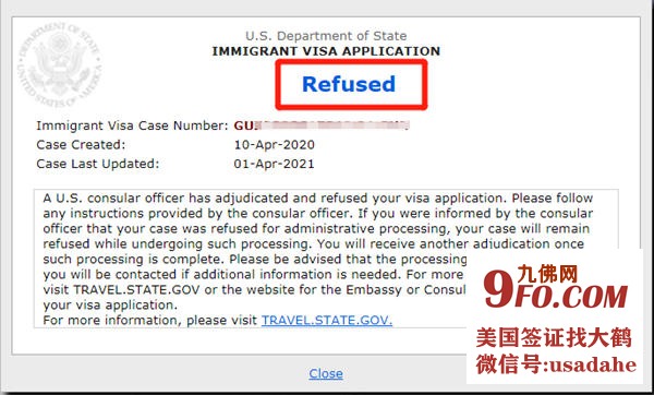 2、当案件一转到领事馆,直至面谈前,案件都会显示为“Refused”