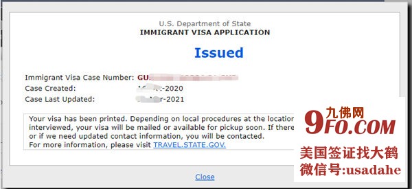 5. 印发签证后,案件状态就会一直是“Issued”状态,顺利通过面谈后,一般两个工作天左右就会显示已签发状态。