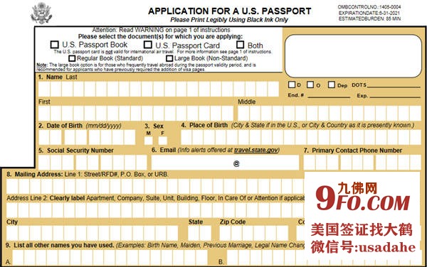 2、填写完整的护照申请表DS-11(一定是电子版打印出来的,现场不再提供纸质空白版,不要提前签字!);