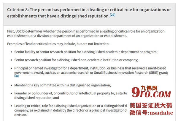 标准8:领导职务/关键职务,(下图为大鹤在美国移民局官网的截图)