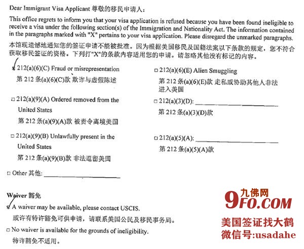 最近,我就接到过一个这样的付费咨询:X女士在2015年的时候委托一名代理人帮忙申请美国旅游签证,而那名代理人在接到案件的时候只考虑了当下的利益,在完全没有征求过X女士同意、并且在X女士完全不知情的情况下把她当时的婚姻状态写成“已婚”。很顺利X小姐拿到了十年的B1/B2签证,且每一次的美国之旅,进出美国海关的时候都非常顺利。但在上个月X小姐进行CR1移民面谈的时候,领事突然问及X小姐前段婚姻的情况,包括前配偶的名字、结婚时间、离婚时间。当时,X小姐就感到非常困惑,因为她只结过一次婚,而且她的丈夫正是为她递交移民申请的人。最终在与领事的交谈中才知道,当时申请旅游签证时所填写的DS-160表格上存在错误的信息,而这些信息都是由那名不靠谱的代理人所填写的。蕞终领事断定X小姐有“欺诈与虚假陈述”行为,给出移民豁免单要求向美国移民局递交I-601豁免申请。