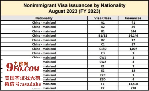 2023年8月份的非移民签证数据,B1/B2(旅游/商务)签证一共签发了2.6万多张,F1签证近1.3万张,总量近4万张。对比7月数据B1/B2商务旅游签证发放量略有增加;从1.8万增加到了2.6万。美国F签证的签发数量略少于7月的量,从2.1万减少到了1.3万,总数还是维持在4万左右,美国签证找大鹤提醒注意:以上所有签证数据均针对在中国面谈的申请人,公布一下8月中国几个使领馆免面签代传递的签证数量以及目前最新可预约的各类面签官方时间: