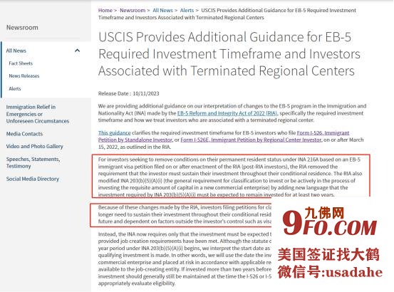除此之外,在2023年10月11日美国移民局还为EB5申请人送上一份惊喜,明确关于新政EB5的80万投资本金维持2年投资有效期的定义,并正式公布:在创造了足够就业名额的前提下,美国EB5申请人的投资款只需要在项目中维持2年的有效期,而条件绿卡期间不要求维持投资款在项目内。这个政策明确定义了2年的投资有效期,也是对美国EB5投资人有利的政策。对于想要快速移民美国的投资人来说,当下EB-5红利期无疑是绝佳时机,越早搭上顺风车,越快获得美国绿卡。